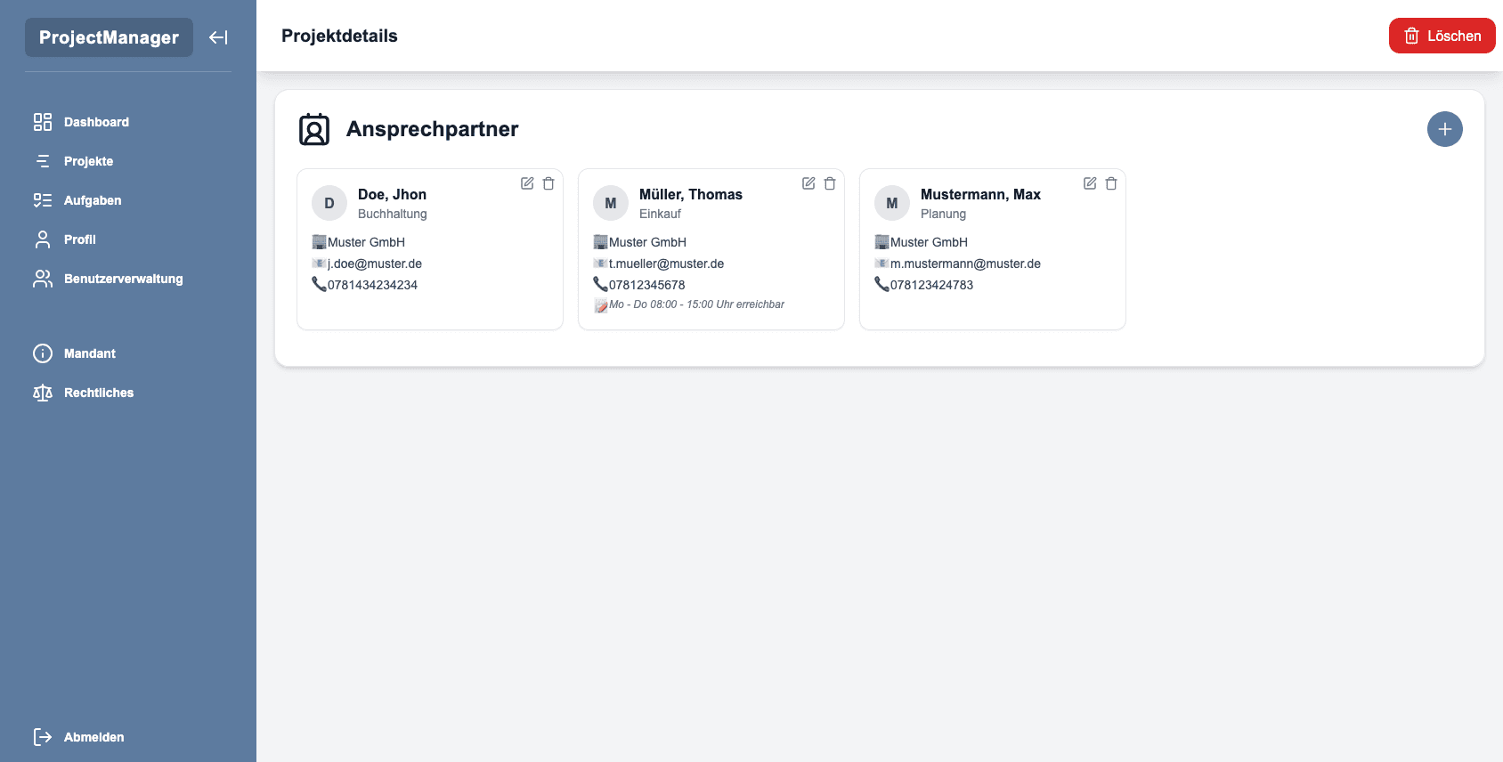 Alle internen und externen Kontakte direkt dem Projekt zugeordnet.
