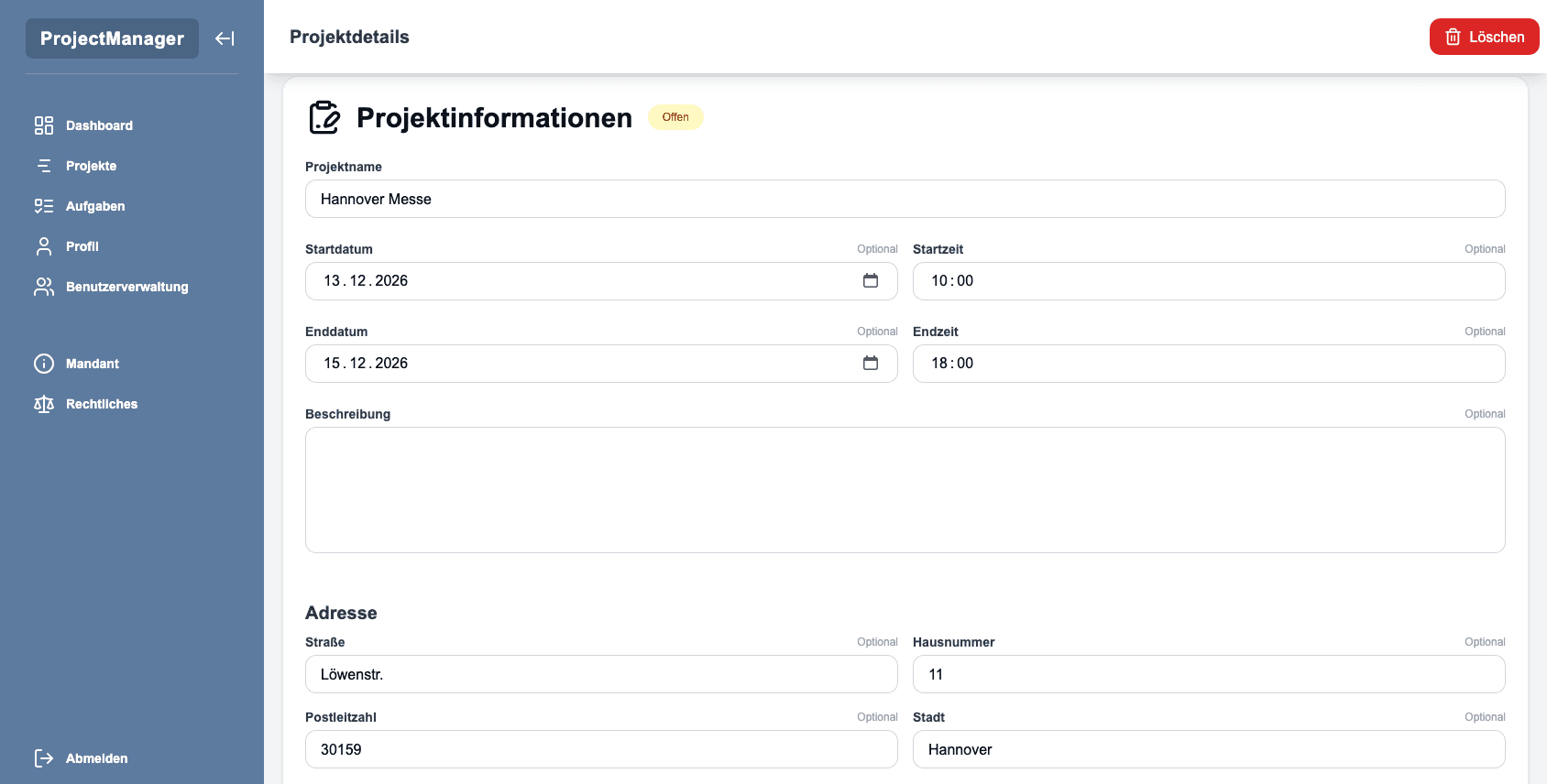 Verwalte alle wichtigen Projekt- und Adressdaten übersichtlich an einem Ort.