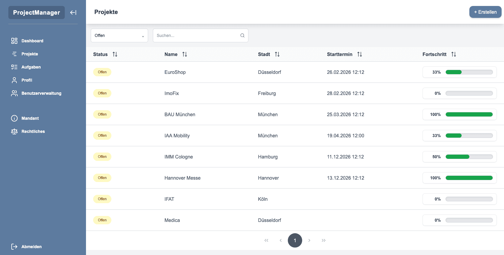 Alle Projekte zentral im Blick – übersichtlich, filterbar und jederzeit aktuell.
