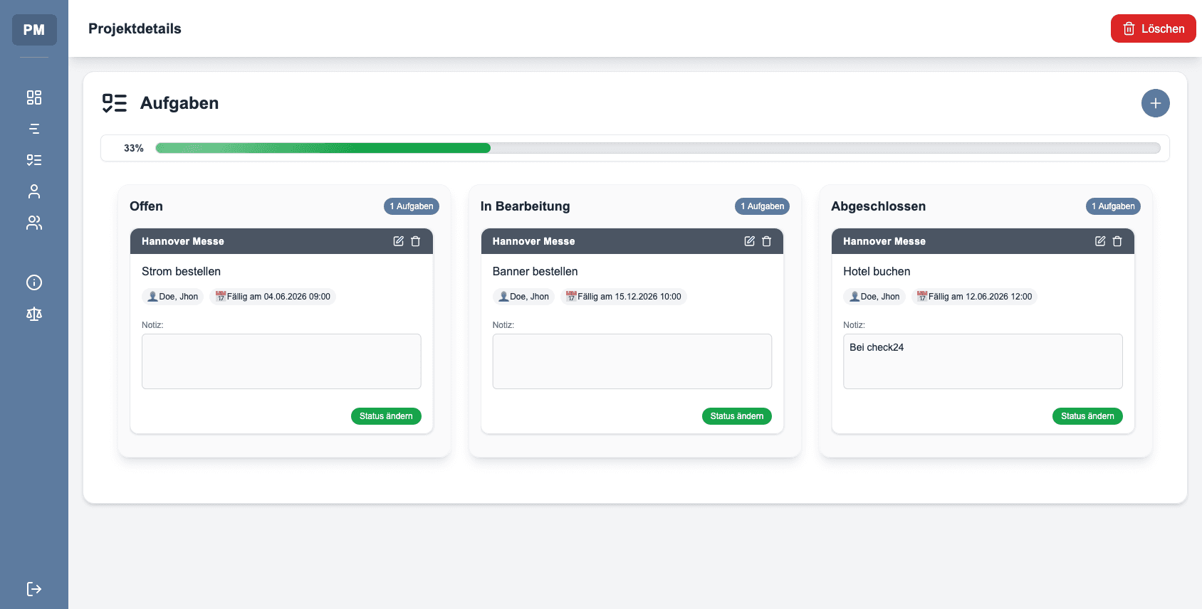 Die Lösung richtet sich speziell an Messebauer und Ausstellungsbauer, die ihre Projekte strukturiert planen und Deadlines zuverlässig einhalten möchten – vom kleinen Team bis zum mittelständischen Betrieb.