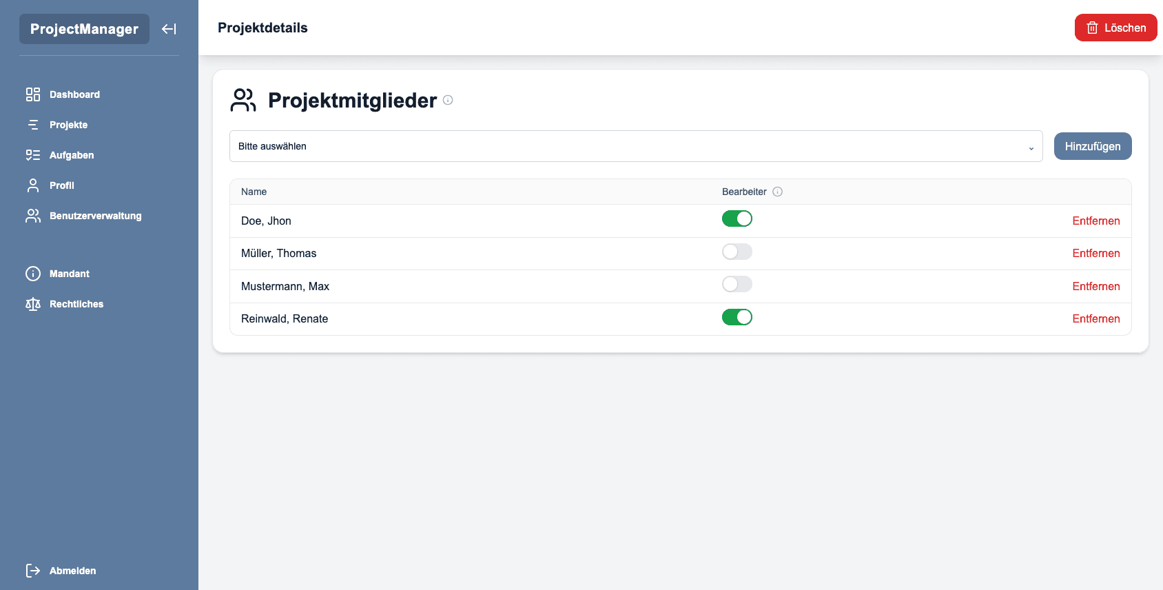 Lege fest, wer Zugriff auf welche Projekte und Inhalte hat.